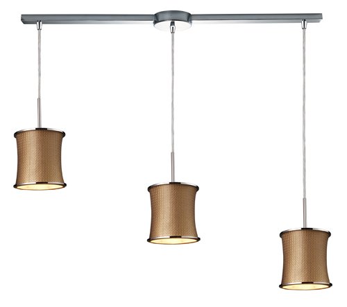 The Detailed Description of Elk 20030/3L Fabrique 3-Light Linear Drum Pendants In Polished Chrome And Bronze Weave ShadeFeatures