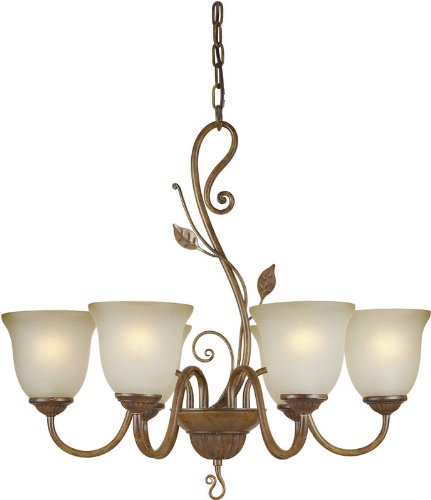 Forte Lighting 2483-06-41 Traditional 6-Light Chandelier features a Rustic Sienna finish complemented by Shaded Umber glass in a classic design with leafy vines detailing that will enhance any decor theme with style and charm for many years to come. 2483-06-41 is 26.5-Inch in diameter by 24.5-Inch high, and is supplied with 3-Feet of chain and 8-Feet of wire. 2483-06-41 comes one per package, and requires six 100-Watt medium base incandescent bulbs, not included, dimmable using a standard incandescent dimmer. Since the company was founded in 1990, Forte Lighting has evolved to one of the leaders in the decorative lighting industry. Forte Lighting is located in southern California's "Heart of the Inland Empire." Our state of the art 172,000-Square Feet corporate headquarters and distribution center located in Fontana California provides easy accessibility for shipping and receiving of Forte product. Forte Lighting's product range has gone through a period of remarkable change, with continuous style developments. Forte Lighting's product selection is an inspiring combination of design, style and fashion, with the ability to adapt change to customer needs. At the heart of our product philosophy is our firm commitment to product engineering, and the production of beautiful lighting that combines style elegance and functionality to luxury. While factory modernization is part of this commitment, we will not lose sight our traditional values. Our customers are those who seek out and demand excellence. Forte's commitment to customer satisfaction remains our top priority.
