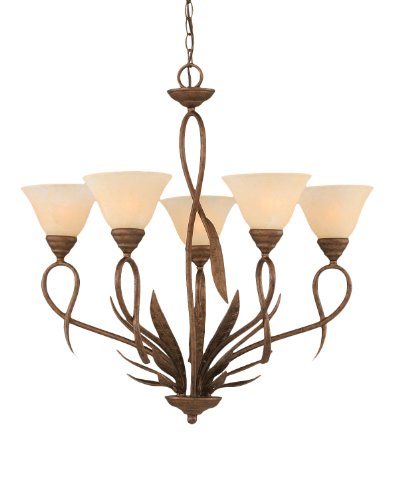 The Toltech Lighting 215-BRZ-503 Leaf Five-Light Up light Chandelier Bronze Finish with Amber Marble Glass Shade, 7-Inch is a ceiling light that features a 7-Inch amber marble glass shade. This chain hung fixture comes with10-Feet of chain and 11-Feet of wire. Product dimensions (in Inch): 28.25 H by 25.75 W. Fixture requires 5 60-Watt medium base incandescent bulbs, not included. Product safety tested and approved by the UL/CUL in the US and Canada. Assembly required.