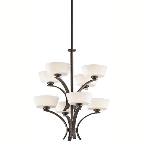 The Detailed Description of Kichler Lighting 42531OZ Rise 8-Light Chandelier, Olde Bronze with Satin-Etched Cased Opal GlassFeatures