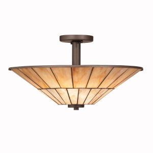 Finish:Olde Bronze, Shade:Art Glass w/ Cut Stone, Light Bulb:(3)100w A19 Med F Incand Traditional Craftsman style and beautiful art glass and cut stone make the Morton 3-light semi-flush so unique. Neutral colors add a warmth and charm, whether the fixtures are illuminated or not. The square accents counterbalance the circular shades, creating a true Arts & Crafts-inspired collection. The shades are made from natural materials. Colors, patterns, and textures will vary from piece to piece.