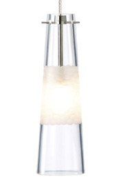 Transparent glass cone with hand-etched band. Includes (1) 50 watt low-voltage GY6.35 base Xenon bi-pin lamp and 8' of field-cuttable suspension cable or 5.8 watt replaceable LED module and 6' of field-cuttable suspension cable. For use with 24 volt transformer, add suffix "-24" to item number (LED lamp option is not compatible with 24 volt transformers). Includes 4" Round Flush Canopy.