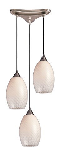 The Detailed Description of Elk 517-3WS 3-Light Pendant In Satin Nickel and White Swirl GlassFeatures