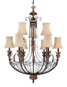 2 tier 9 light chandelier with maple wood shades. (9) 60-Watt type b candelabra base bulbs not included.