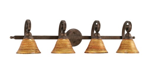 The Detailed Description of Toltec Lighting 154-BRZ-454 Curl Four-Light Bath Bar Bronze Finish with Firr Saturn Glass Shade, 7-InchFeatures