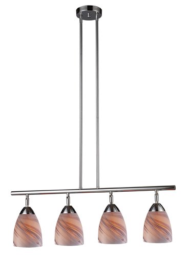 Finish:Polished Chrome, Glass:Creme Glass, Light Bulb:(4)60w A19 Med F Incand Celina 4-Light Linear Pendant Designed to showcase our many blown glass options, the Celina Collection utilizes a simplified frame that embellishes the shape and color of the glass. Includes: 2 - 6' Extension rods 4 - 12' Extension rods 2 Swivels