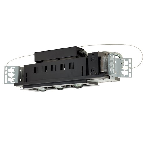 The Detailed Description of Jesco Lighting MG1650-3EBB Modulinear Directional Lighting For New Construction, Double Gimbal 50W MR16 3-Light Linear, Black Interior With Black TrimFeatures