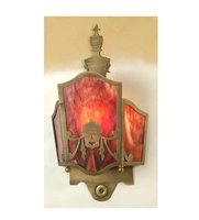 Meyda Tiffany 82202 Theatre Mask 1-Light Wall Sconce is hand crafted in the USA by Meyda artisans. Offering an attractive and decorative look in Gothic Revival lighting, the Theatre Mask fixture is designed with three panels of wispy Burgundy art glass and finished in a rich, handsome Antique Brass. The 82202 is 21-Inch high by 12-Inch wide by 4.25-Inch extension from the wall. The 82202 comes one per package, and requires one 60-Watt medium base incandescent bulb (not included), dimmable using a standard incandescent bulb. As in any hand crafted glass, patterning and the overall look may vary, and may not look exactly like the image shown when received, and may all differ slightly if ordering in multiples. Custom crafted in Yorkville, NY-please allow 30 days before shipping. The Meyda Tiffany Company is the nation's leading manufacturer and designer of Tiffany lamps and decorative lighting. Although founded in 1974, the firm's roots actually date back to the early 1900s, supplying Louis Comfort Tiffany and Tiffany Studios with lighting products, and creating the original Coca-Cola stained glass lamps and chandeliers.Meyda Lighting offers thousands of in-stock stained glass lighting and decor designs, with more than 50,000 customizable lighting options. Its vast line includes: Coca-Cola stained glass lighting group, Old Forge Collection of Rustic and Lodge styled lighting and decor, Craftsman Signature Series of outdoor and indoor lighting (including new landscape lanterns) featuring Arts & Crafts designs, Stained Glass lighting featuring Victorian, Nouveau and a broad range of styles, Art Glass windows and Fireplace Screens, Tiffany gifts and home accents, and The Metro and Metro Fusion Lines of contemporary art glass and fused glass designs.