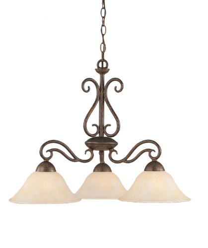 The Detailed Description of Toltec Lighting 46-BRZ-513 Olde Iron Three-Light Down light Chandelier Bronze Finish with Amber Marble Glass, 10-InchFeatures