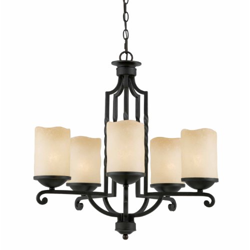 Finish:Bronze Blacksmith, Glass:Antiqued Scavo, Light Bulb:(5)100w A19 Med F Incand  Granada 5-Light Chandelier  Includes 6 feet of chain and 12 feet of cord