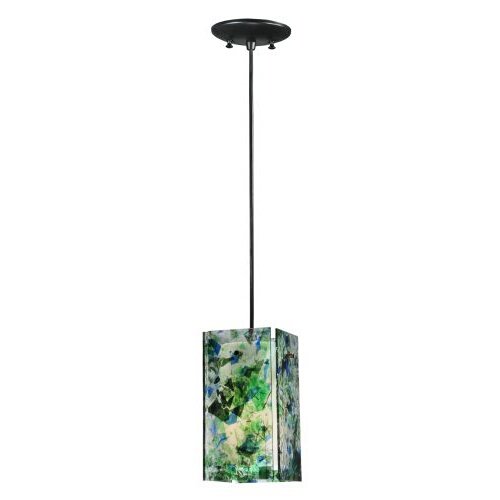 Meyda Tiffany 111350 Quadrato 1-Light Mini-Pendant is hand crafted in the USA by Meyda artisans. A dramatic Black finish complements the drama of the exquisite Confetti art glass shade with the rich Purples, deep Blues, and elegant Green fused glass in a contemporary design sure to be appreciated for years to come. The 111350 is 15-Inch high x 5-Inch wide and has a maximum hanging height of 75-Inch. The 111350 comes one per package, and requires one 60-Watt medium base incandescent bulb (not included). As in any hand crafted glass, patterning and the overall look may vary, and may not look exactly like the image shown when received, and may all differ slightly if ordering in multiples. Custom crafted in Yorkville, NY - please allow 50 days before shipping. The Meyda Tiffany Company is the nation's leading manufacturer and designer of Tiffany lamps and decorative lighting. Although founded in 1974, the firm's roots actually date back to the early 1900s, supplying Louis Comfort Tiffany and Tiffany Studios with lighting products, and creating the original Coca-Cola stained glass lamps and chandeliers.Meyda Lighting offers thousands of in-stock stained glass lighting and decor designs, with more than 50,000 customizable lighting options. Its vast line includes: Coca-Cola stained glass lighting group; Old Forge Collection of Rustic and Lodge styled lighting and decor; Craftsman Signature Series of outdoor and indoor lighting (including new landscape lanterns) featuring Arts and Crafts designs; Stained Glass lighting featuring Victorian, Nouveau and a broad range of styles; Art Glass windows and Fireplace Screens; Tiffany gifts and home accents; and The Metro and Metro Fusion Lines of contemporary art glass and fused glass designs.