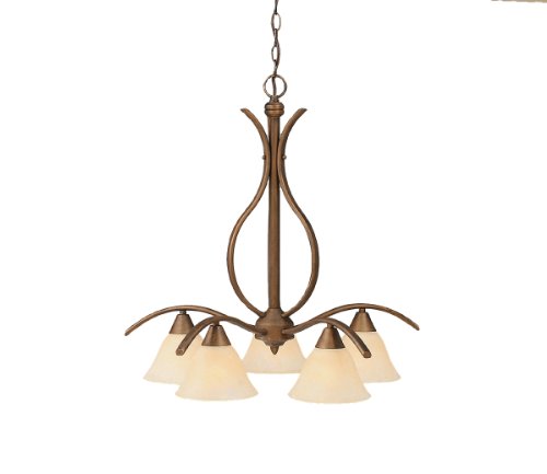 The Detailed Description of Toltec Lighting 297-BRZ-503 Swoop Five-Light Down light Chandelier Bronze Finish with Amber Marble Glass Shade, 7-InchFeatures