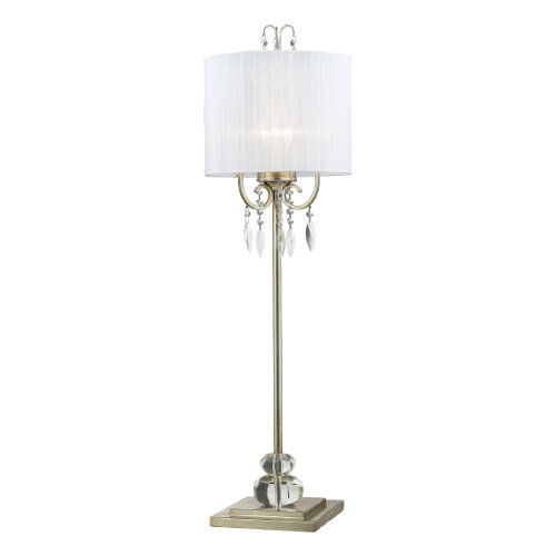 Dimond Lighting was founded with commitment to deliver innovative quality products with designer appeal and conscientious value. The Albion Table Lamp has a Silver Leaf Finish and Pure White Ribbon shade. Lamp is 12-Inch wide by 41-Inch tall and takes three 60-Watt candelabra base bulbs. From inspiration to design, whatever your decor, the boundless character and exquisite details of Dimond Lighting creations truly become "Jewelry for the Home".
