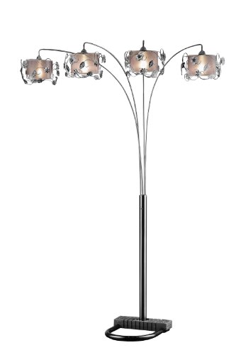 91-Inch h silver crystal arch lamp. A sensational modern (yet very warm feeling) lamp featuring four alluring metal/crystal floral inspired shades on four arched arms. This lamp has presence!.