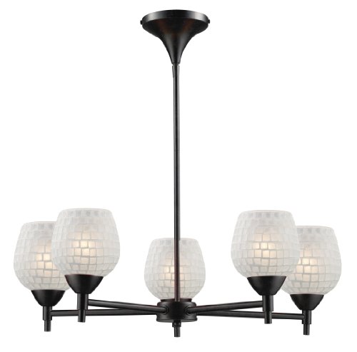 The Detailed Description of Elk 10155/5DR-WHT Celina 5-Light Chandelier In Dark Rust and White GlassFeatures