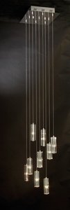 Finish:Polished Chrome, Glass:4-Sided Cut Crystal, Light Bulb:(9)20w T3 G4 12v Halogen Icarus 9 light chandelier/multi-light pendant features hand polished cut crystal. Crystal is available in 3-sided or 4-sided cut. Includes 12 Volt Lightec Electronic Transformer.