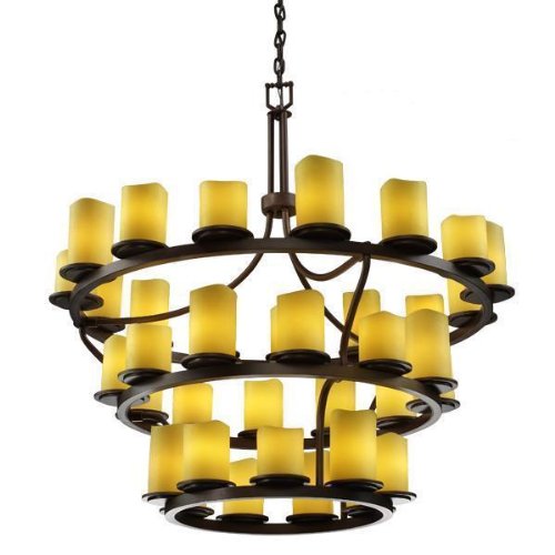 Justice Design Group CLD-8713-10-DBRZ Dakota Collection 36-Light 3-Tier Chandelier features an elegant Dark Bronze finish complemented by exquisite Clouds flat top candle-like shaped shades for a rich transitional look that will enhance your cabin, lodge, or townhome in the city for beautiful form and function that will enrich many decor themes for years to come. The CLD-8713-10-DBRZ is 42-Inch high by 42-Inch wide, and includes 6-feet of chain and 10-feet of wire. The canopy is 1-Inch high by 5.25-Inch wide. The CLD-8713-10-DBRZ comes one per package, and requires thirty-six 40-Watt candelabra base incandescent bulbs (not included), dimmable using a standard incandescent dimmer. From an elegant lamp atop a contemporary end table to a dramatic sconce illuminating a formal entryway, Justice Design offers a wide array of lighting solutions for residential and commercial settings. Create a mood, complement a theme, or simply add the perfect accent with a Justice Design decorative lighting fixture. From paintable Bisque to faux finished masterpieces hand crafted by skilled artisans, Justice Design offers endless design possibilities for any environment - indoor or outdoor. Justice Design is the undisputed leader in the ceramic decorative lighting category with one of the finest reputations in the industry. Our ceramic fixtures are cast by hand, carefully inspected, and individually hand finished insuring satisfaction. From concept to order fulfillment, Justice Design offers uncompromised attention to detail, coupled with unparalleled service.