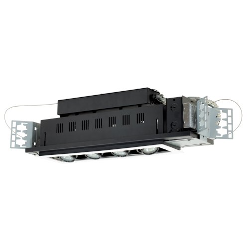 The Detailed Description of Jesco Lighting MG1650-4EBB Modulinear Directional Lighting For New Construction, Double Gimbal 50W MR16 4-Light Linear, Black Interior With Black TrimFeatures