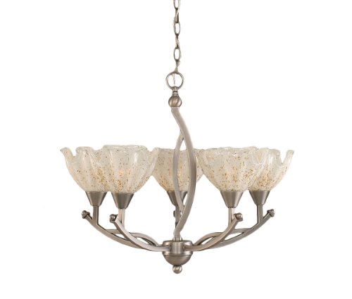 The Detailed Description of Toltec Lighting 275-BN-755 Bow Five-Light Uplight Chandelier Brushed Nickel Finish with Gold Ice Glass Shade, 7-InchFeatures