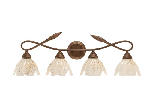 The Detailed Description of Toltec Lighting 114-BRZ-755 Leaf Four-Light Bath Bar Bronze Finish with Gold Ice Glass, 7-InchFeatures