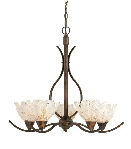 The Detailed Description of Toltec Lighting 295-BRZ-755 Swoop Five-Light Uplight Chandelier Bronze Finish with Gold Ice Glass Shade, 7-InchFeatures