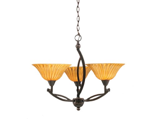 The Toltech Lighting 273-BC-519 Bow Three-Light Down light Chandelier Black Copper Finish with Tiger Glass Shade, 10-Inch is a ceiling light that features a 10-Inch tiger glass shade. This chain hung fixture comes with 10-Feet of chain and 11-Feet of wire. Product dimensions (in Inch): 20 H by 21.75 W. Fixture requires 3 100-Watt medium base incandescent bulbs, not included. Product safety tested and approved by the UL/CUL in the US and Canada. Assembly required. This model is also available in the following finishes: Brushed Nickel.